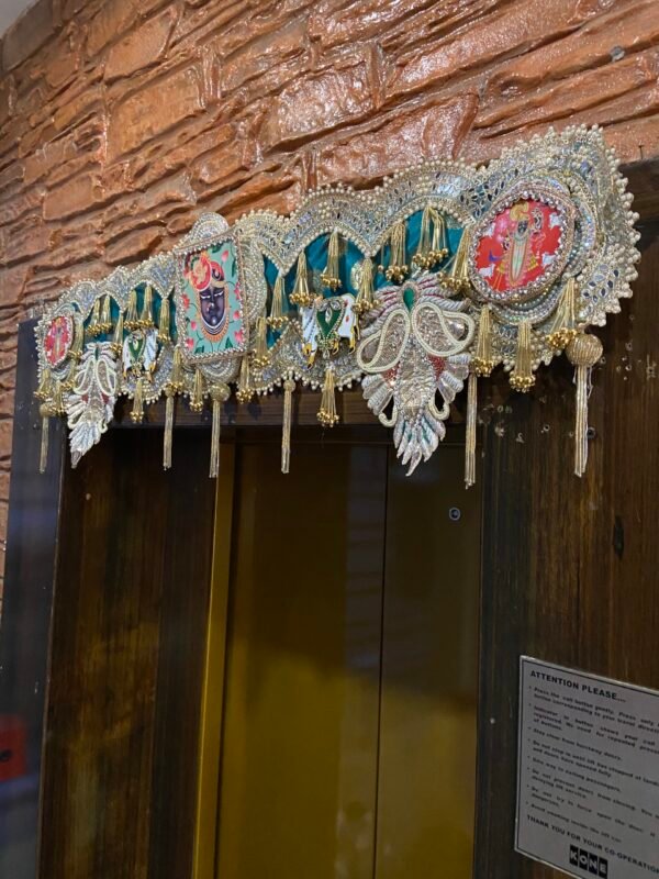 Sindoori Ganesh Toran (40″) – Elegant handcrafted toran in rich sindoori hues featuring Lord Ganesh motifs. Perfect for adorning doorways, temples, and festive spaces to bring auspiciousness, prosperity, and positive energy into your home.
