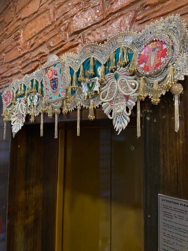 Sindoori Ganesh Toran (40″) – Elegant handcrafted toran in rich sindoori hues featuring Lord Ganesh motifs. Perfect for adorning doorways, temples, and festive spaces to bring auspiciousness, prosperity, and positive energy into your home.